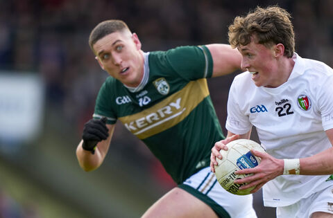Kobe McDonald of Mayo taking on Kerry' Joe O'Connor in Tralee. Picture: INPHO/James Lawlor