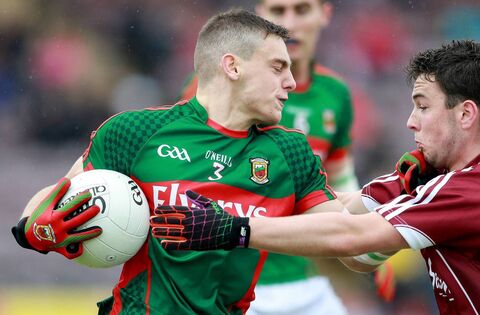 Connacht GAA Minor Football Championship Final, Pearse Stadium, Galway 10/7/2016 Galway vs Mayo Mayo's Donovan Cosgrove and Desmond Connelly of Galway Mandatory Credit ©INPHO/James Crombie