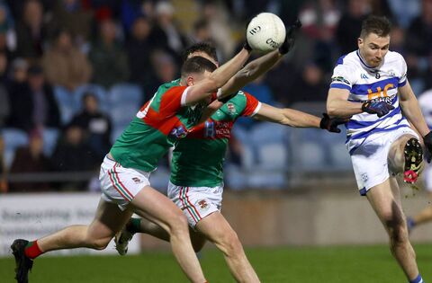 Niall Heffernan’s team had begun brightly enough, with Keith Tighe and Ben Thornton scoring a point apiece inside two minutes before Conor O’Shea’s goal got Breaffy off the mark. David Clarke had already saved low to his right from Aidan Cunningham but could do nothing when Joe Mellett hand-passed across the goalmouth to give former Mayo attacker O’Shea the easiest of palmed finished.