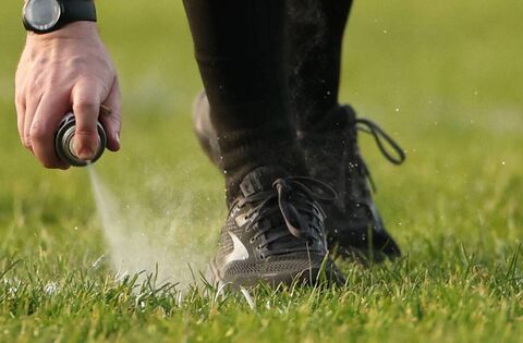 A referee marks a free kick position. Mandatory Credit ©INPHO/James Crombie