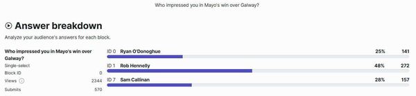 Here is how you voted on our recent - POLL: Who impressed you in Mayo's win over Galway? Vote now!