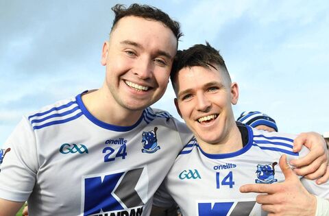 Tooreen’s Shane Crinnigan and Fergal Boland celebrate their victory Meelick-Eyrecourdt in the Connacht GAA Club Intermediate Hurling Championship final at King and Moffatt Dr. Hyde Park, Roscommon, this afternoon. Picture: David Farrell Photography