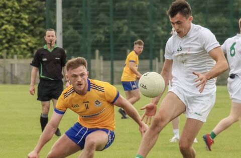 Ballaghaderreen's Cian Hanley in possession as Knockmore's Darren McHale approaches. Ballagh' caused a mighty shock in beating the 2020 and 2021 senior champions. Picture: SJ Walsh Photography
