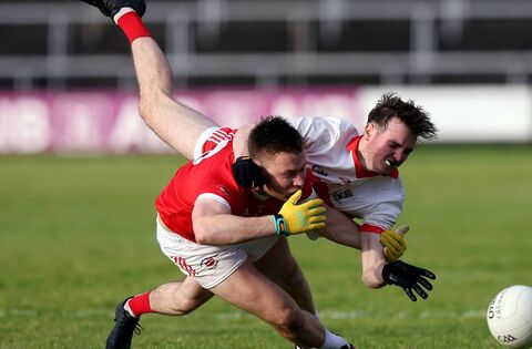 Coolera-Strandhill's Oran Harte makes a flying tackle on Niall Daly of Padraig Pearses during last Sunday's Connacht Club SFC Final at Markievicz Park. Pictures: INPHO/John McVitty
