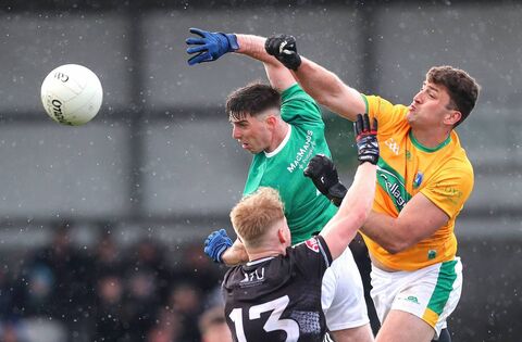 Seán Harkin and Killian Gaffey with Sligo's Joshua Flynn during the Connacht SFC quarter-final between Sligo and Leitrim in Markievicz Park. Picture: INPHO/Tom O'Hanlon