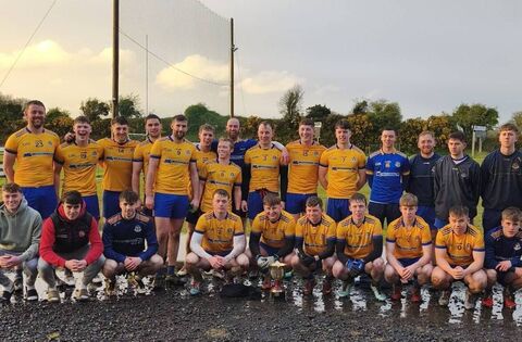The Knockmore senior football squad after Friday evening's win against Ballina Stephenites in the replay of the North Mayo Sweeney Cup Final at St Joseph's Park in Knockmore.