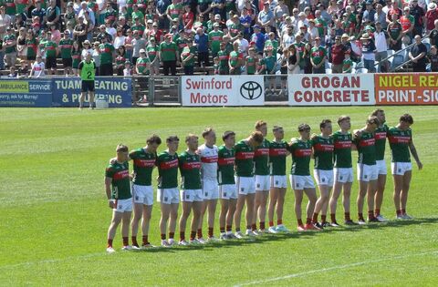 The Mayo team stand for the National Anthem prior to the start of last Sunday's All-Ireland SFC Round 1 tie at Hastings Insurance MacHale Park. Pictures: David Farrell Photography