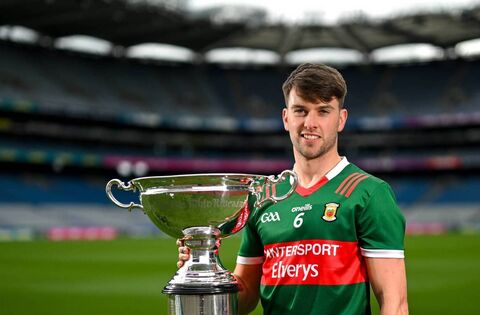 Mayo's David Kenny will captain the side once again as they face Cavan in Tooreen in the Allianz NHL. Picture: Stephen McCarthy/Sportsfile