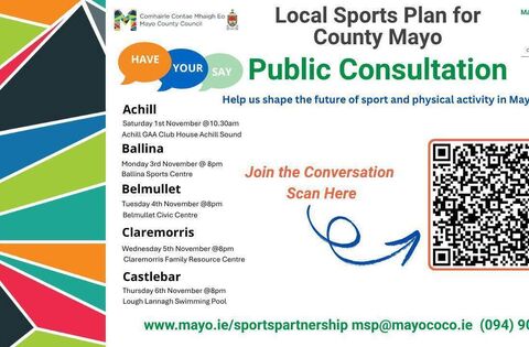 Mayo County Council, in partnership with Mayo Sports Partnership, is inviting residents, clubs and communities to co-design a new Local Sports Plan for the county that will guide how the council continues to support and develop sport and physical activity in the future.
