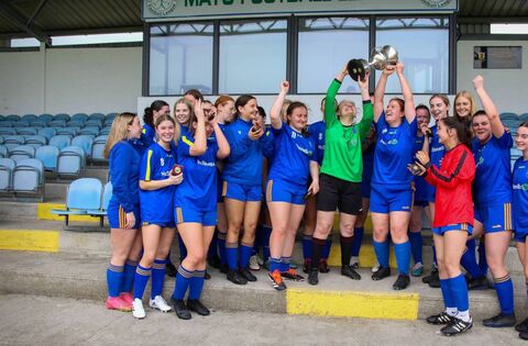Killala lift the Mary Walsh Cup after defeating Westport United in the final. Photo: Aaron Gallagher Photography