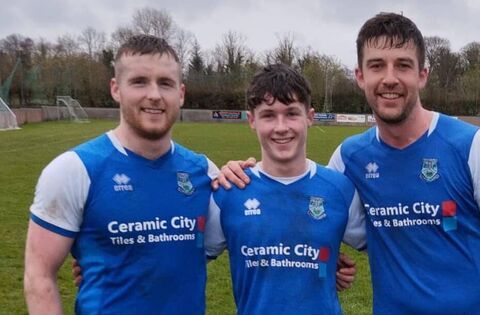16-year-old Patrick McHale (centre) made his Super League debut for Manulla against Conn Rangers as a substitute. Also pictured is Patrick's brother Gary (left) and cousin Colm Murphy (right). Picture: Manulla FC.