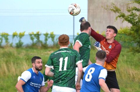 Manulla's Jack Livingstone punches clear. The goalkeeper kept a clean sheet as the Blues secured survival at the expense of Claremorris. Picture: John Corless