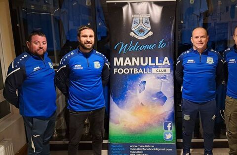 Manulla's new management team of Damien Joyce (football co-ordinator), Andrew shally (player/joint-manager), Roger Clarke (joint-manager) and Gary Heneghan (assistant manager).