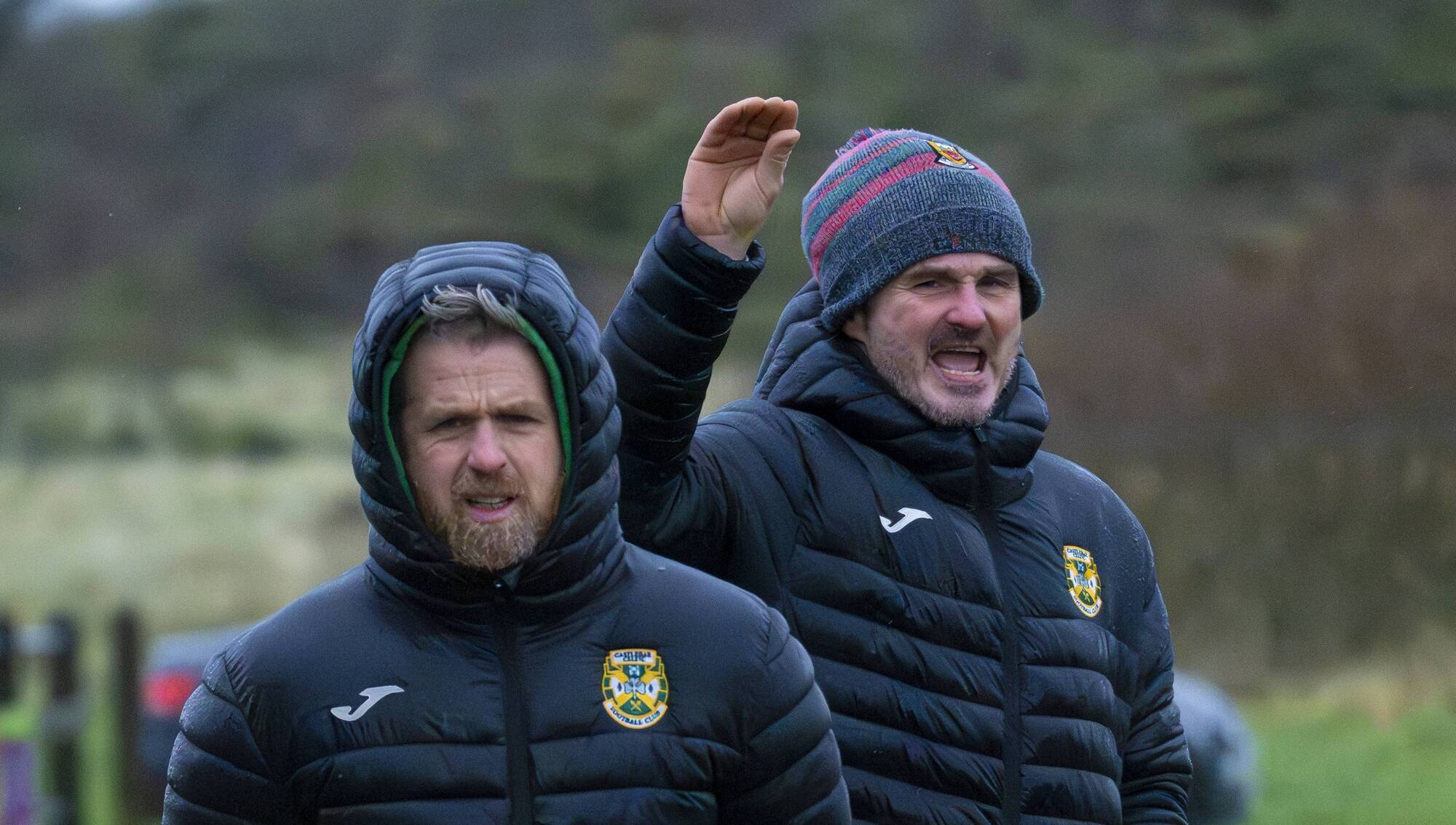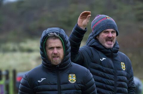 Castlebar Celtic manager Stevie Gavin, left, alongside assistant manager Declan Flynn. Picture: John Corless
