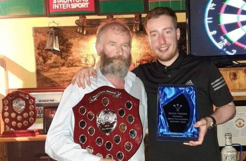 Conor Heneghan (right) won the Kevin O'Brien Memorial Darts Competition in Mick O'Brien's Bar in Claremorris recently. Conor also had the highest checkout in the tournament with a 160 finish.