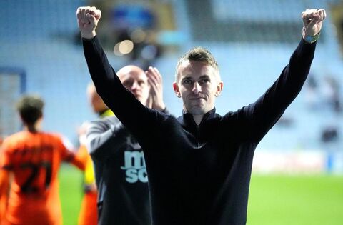 Ipswich Town manager Kieran McKenna applauds the fans after the final whistle in the Sky Bet Championship match at the Coventry Building Society Arena, Coventry. If he decides to leave, he will not be short of options: Picture: Bradley Collyer/PA Wire.