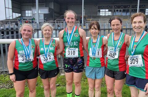 The Connacht Cross-Country League winning women's team, Mayo AC. From left, Katie Gibbons, 2nd, Senior, Mags Glavey, Eimear Fitzmaurice, 1st, o35, Angela O’Connor, 1st, o50, Colette Tuohy, Pauline Moran.