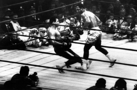 Joe Frazier knocks down Cassius Clay in the fifteenth and final round of their heavyweight title fight which he won at Madison Square Garden on March 8, 1971. A few months later Frazier was fronting his own band in Castlebar's Royal Ballroom. Picture: INPHO/Allsport