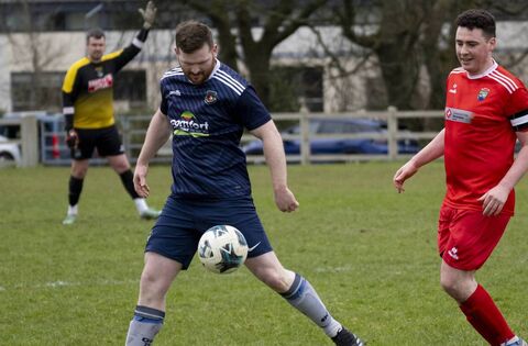 Glenhest pushed forward looking for an equalizer and they got a free kick from a good position. Levi Barrett smacked it low and straight into the wall. It came out to Adrian Rowland but Ballinrobe pressed and Oisin Hanlon robbed possession from Rowland and raced through. He went around Nathan Barrett and dinked it towards the open net but it smacked the post. His blushes were saved by Peter Butler, who had joined him on the canter upfield and tapped in Ballinrobe’s second of the game.