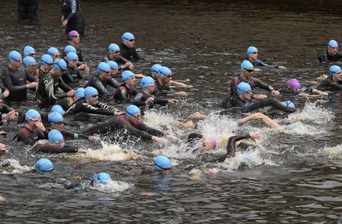 Competitors giving it their all and making a splash in the River Moy during the annual Salmon Run Triathlon, held recently in conjunction with TELUS International AI Data Solutions, Liquid Motion Triathlon Club and Mayo Mental Health. Picture: Michael McLaughlin