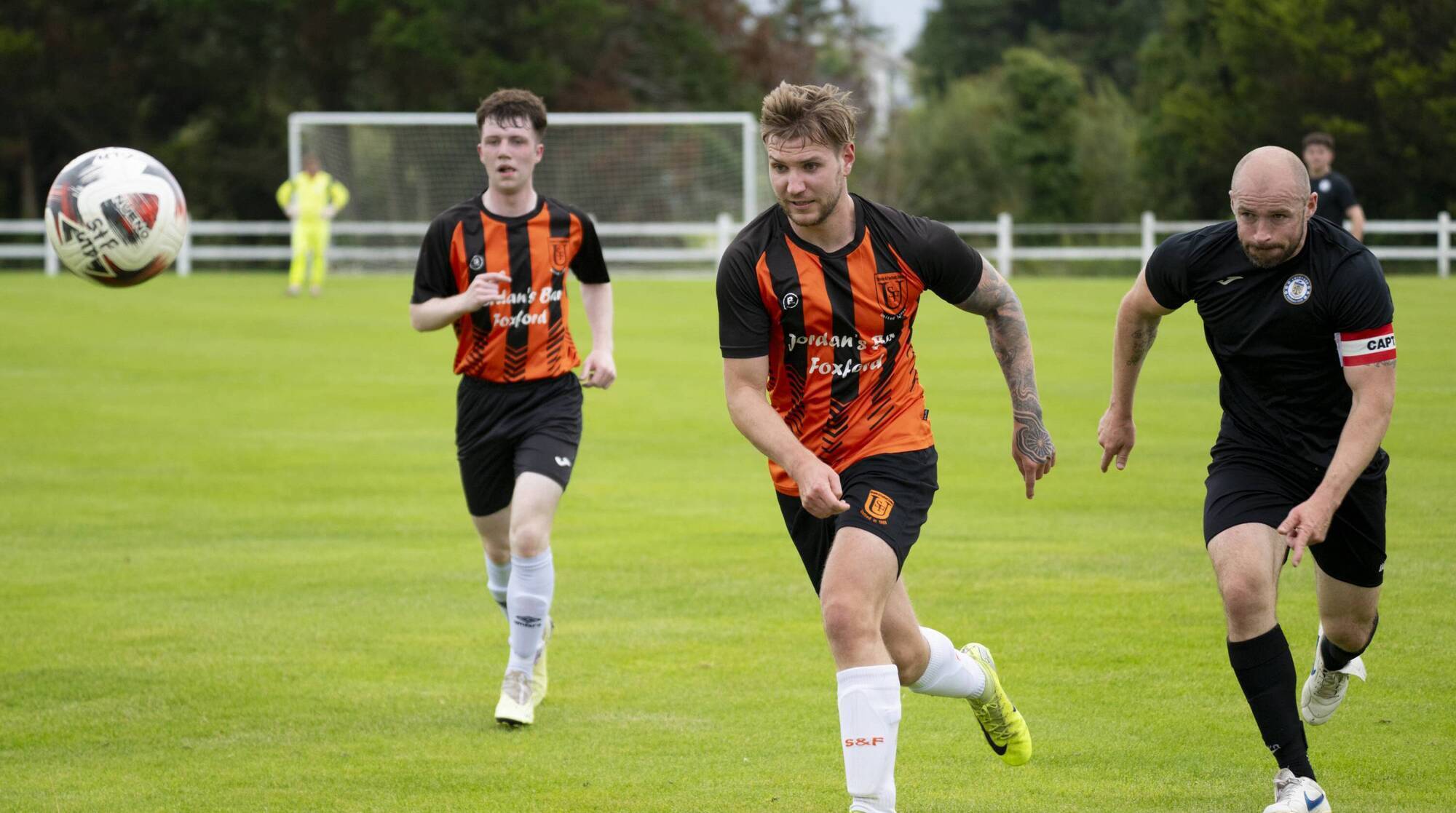 It was sad to see Swinford midfielder Niall Egan leave the field in an ambulance after a nasty leg injury sustained on twelve minutes. Both teams formed a guard of honour for the ambulance as it left the pitch after a lengthy delay, to loud applause.