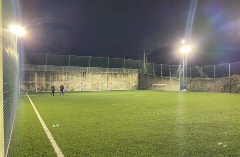 The newly-constructed hurling wall, astroturf and floodlights at Tooreen Hurling Club.