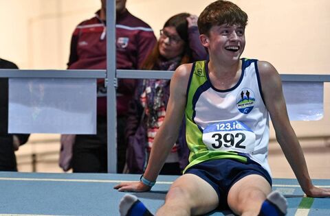 Athletics: The width of a sheet of paper is all that separated Jake O’Brien (pictured) from claiming the gold medal in Saturday’s men’s U23 3K Walk at the 123.ie Junior and U23 Indoor Championships. The Keelogues teenager, who represents Moy Valley AC, went head to head with Matthew Glennon in what turned into a thrilling contest, but it was the Mullingar Harriers AC walker who pipped O’Brien by .5 of a second, taking the title in a winning time of 12:09.49 ahead of Jake O’Brien’s 12:09.99.