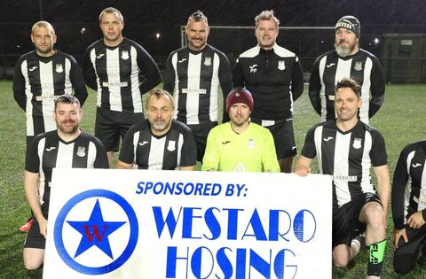 Westport United kept their title defence alive in Division 1 with a 6-3 win over Ballyvary Blue Bombers last Wednesday. Ciaran Cuddy, Kevin Joyce and Danny Scahill put United in front but Ballyvary brought it back to a goal through strikes by Brian Morley and Simon Cloherty. James Gill and Mark Joyce (2) made sure of a vital three points for the Covies, with Ronan Flynn netting a late consolation for the Bombers.