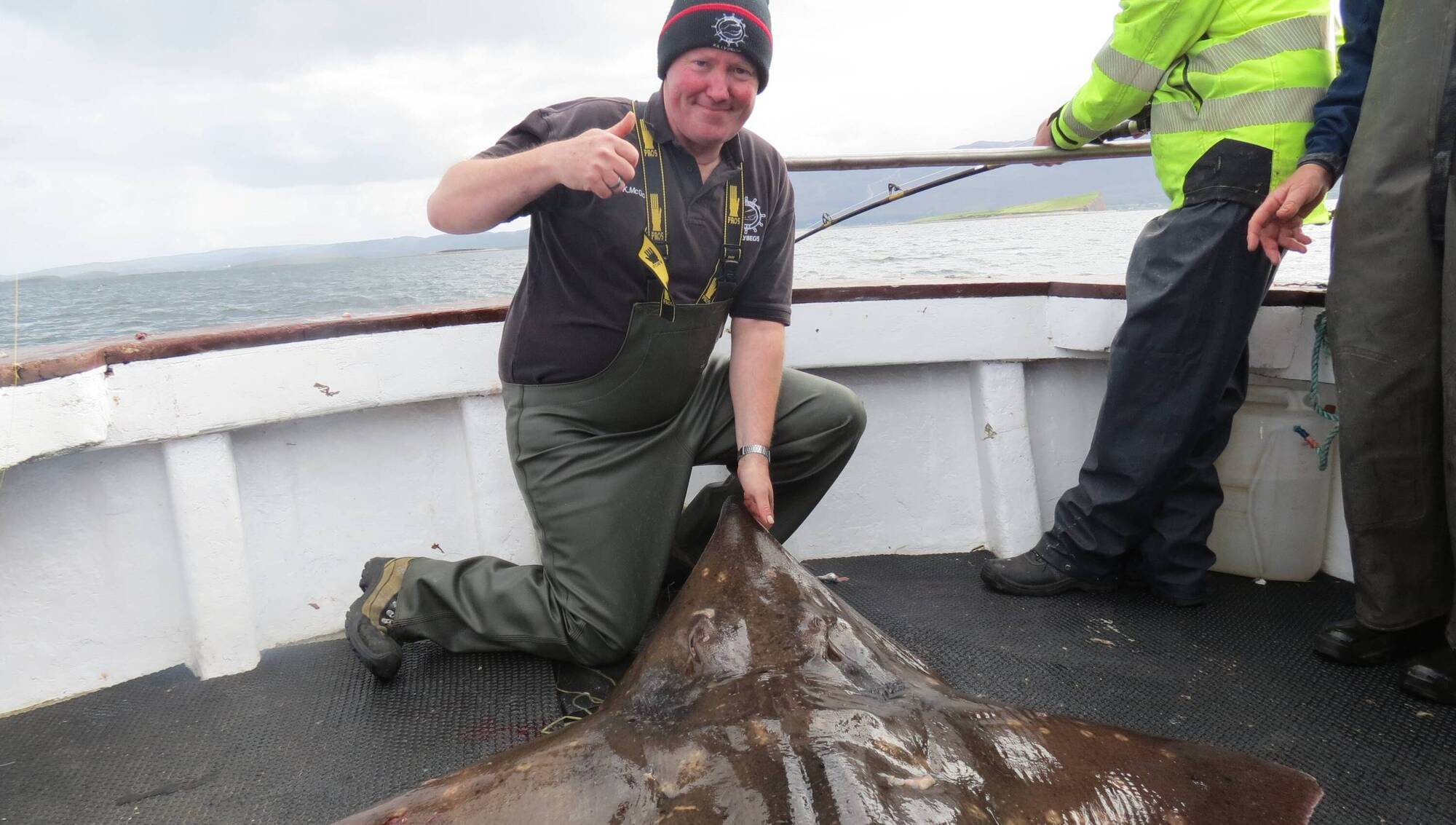 Ciaran McGowan aboard The Finnaun with his 185lb skate which he caught during the recent Newport SAC teams competition.