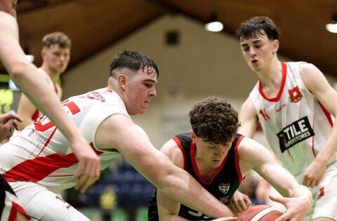 Just four days after St Muredach’s national semi-final cup win, much of that team was back in action for Merry Monk Ballina in their second U20 National League game last Sunday against Titans in Colaiste Iognaid. In a rollercoaster battle, Merry Monk edged it 69-66 after a nail-biter.