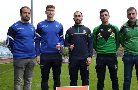 At last week's press night ahead of the Treanlaur Catering Mayo JFC 'B' final were, from left: Killala selector Brian Murphy and team captain Liam Maughan, Kilmovee captain Liam Moffatt, Sean Horan and manager Kieran Flatley.