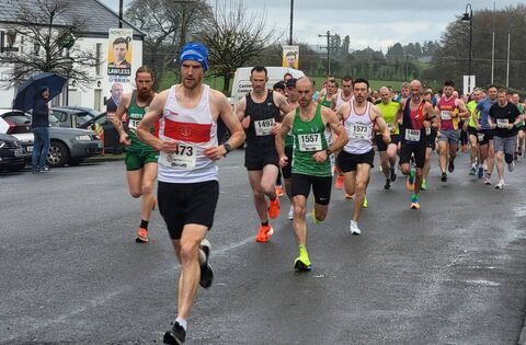 Race winner Michael Flanagan of Galway City Harriers leads the field out at the Hollymount 10k which took place on Sunday. November 17.