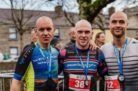 Supreme Men's Winners, Anthony Murray, third place, Alan Dunne, winner and new course record holder, Niall Corless, second place.