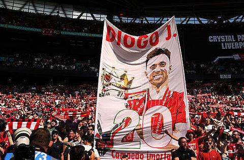Tributes were paid to former Reds forward Diogo Jota, who died in a car crash with his brother Andre Silva last month and were honoured with wreaths laid on the pitch and a period of silence before kick-off.