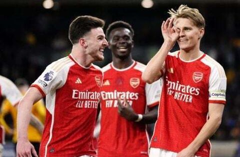 But they returned to the summit of the Premier League thanks to goals from Leandro Trossard and Martin Odegaard at Molineux, moving a point above Manchester City, who have a game in hand.