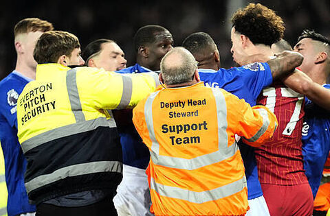 After an agonising wait for VAR to confirm the goal, things took an incendiary turn inside the old stadium as Abdoulaye Doucoure’s wild celebrations in front of the away fans sparked a furious reaction.