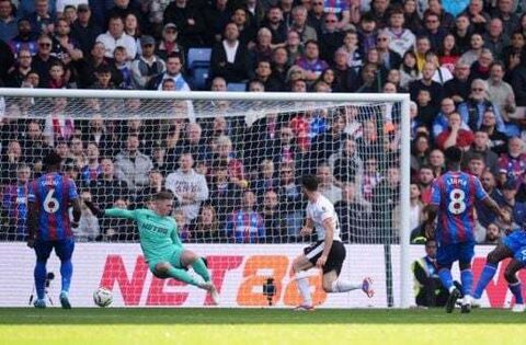 Terrific instincts from Hughes saw him intercept the ball in midfield and Palace countered. Mateta got in behind and slipped in Eze one-on-one with Jaros but he hit his effort straight at the keeper.