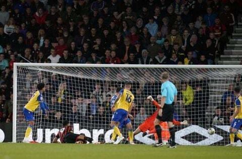 Three minutes later, the Cherries were in complete control when Rothwell’s free-kick from the left side of the box escaped everyone’s touch and bounced into the bottom corner.