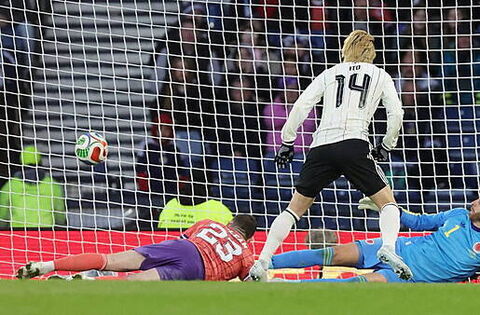 In the eighth minute Scott McTominay had a terrific chance to open the scoring when fellow midfielder John McGinn teed him up with a cross from the right but his unconvincing shot from 10 yards was pushed on to the post by Japan keeper Zion Suzuki and away to safety.