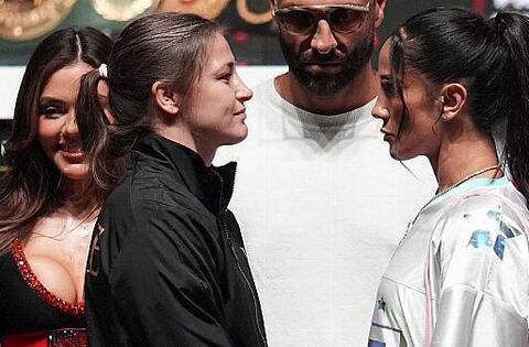 During a frenzied press conference at the Pavilion at Toyota Music Factory, Taylor had to field questions from Paul about if promoter Eddie Hearn would be in her corner on Friday night.