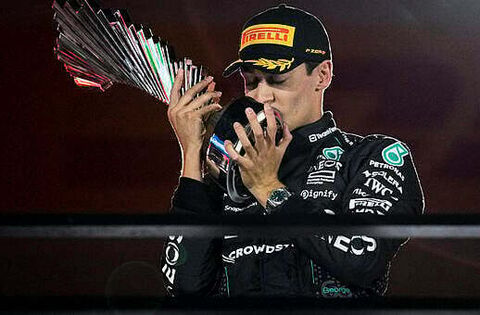 Russell’s team-mate Lewis Hamilton drove back from 10th to complete a British one-two for the Silver Arrows.