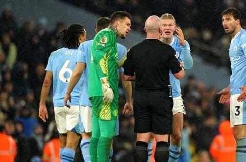 It sparked an animated reaction from Man City’s players with Haaland in particular incensed along with manager Pep Guardiola on the touchline.