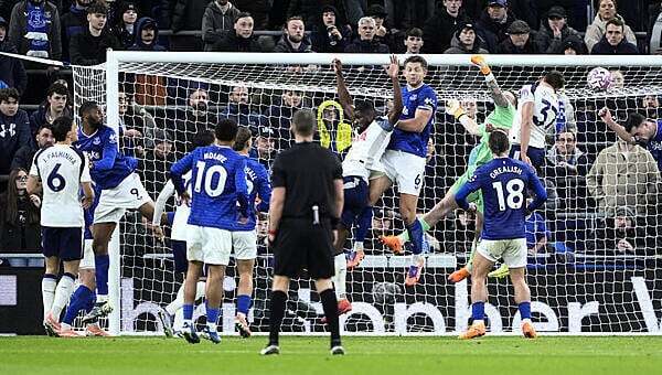 Despite creating little from open play Spurs continued to look dangerous at set-pieces and after Bentancur headed over one corner, Van de Ven made no mistake from another after finding himself unmarked between Everton’s two centre-backs.