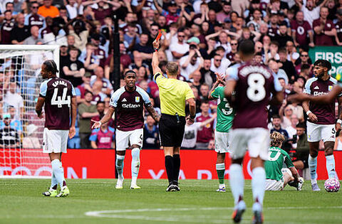 Attention returned to the action on the pitch when Villa were reduced to 10 men in the 66th minute.