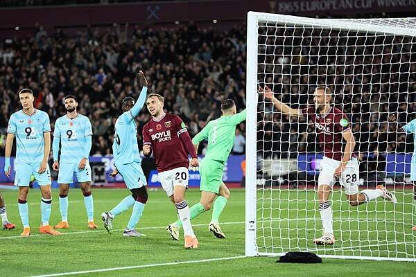 In the second half Soucek came on for Freddie Potts, who had to go off with a dead leg, and was on hand to bundle the ball home at the far post after Martin Dubravka palmed out a Lucas Paqueta shot.