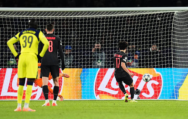 Vitinha sent Vicario the wrong way to complete his hat-trick before a late red card for Lucas Hernandez on a night where Spurs showed much-needed attacking impetus.