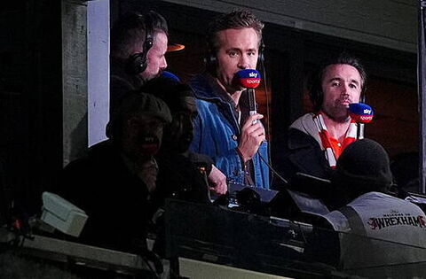 Ryan Reynolds and Rob Mac cheer on Wrexham from Sky Sports commentary box