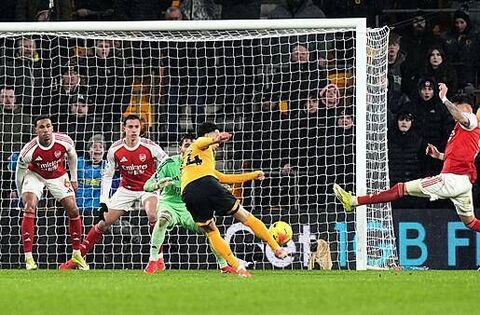Wolves cut the deficit in half five minutes later when Bueno lined one up outside the box and curled a stunner past Raya’s despairing dive to give the basement side hope.