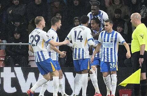 Carlos Baleba was sent off before the hour mark for Brighton, which sparked a frantic finish as David Brooks reduced the deficit in the third minute of added time before Antoine Semenyo hit the crossbar even deeper into stoppage time, but Hurzeler watched his team hold on for a fourth triumph in six Premier League matches.