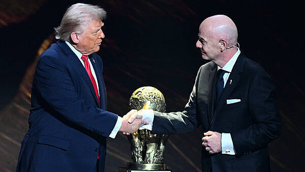 Italian Fifa President Gianni Infantino and US President Donald Trump arrive to the draw for the 2026 FIFA Football World Cup taking place in the US, Canada and Mexico, at the Kennedy Center, in Washington, DC, on December 5, 2025. (Photo by Jia Haocheng / POOL / AFP via Getty Images)